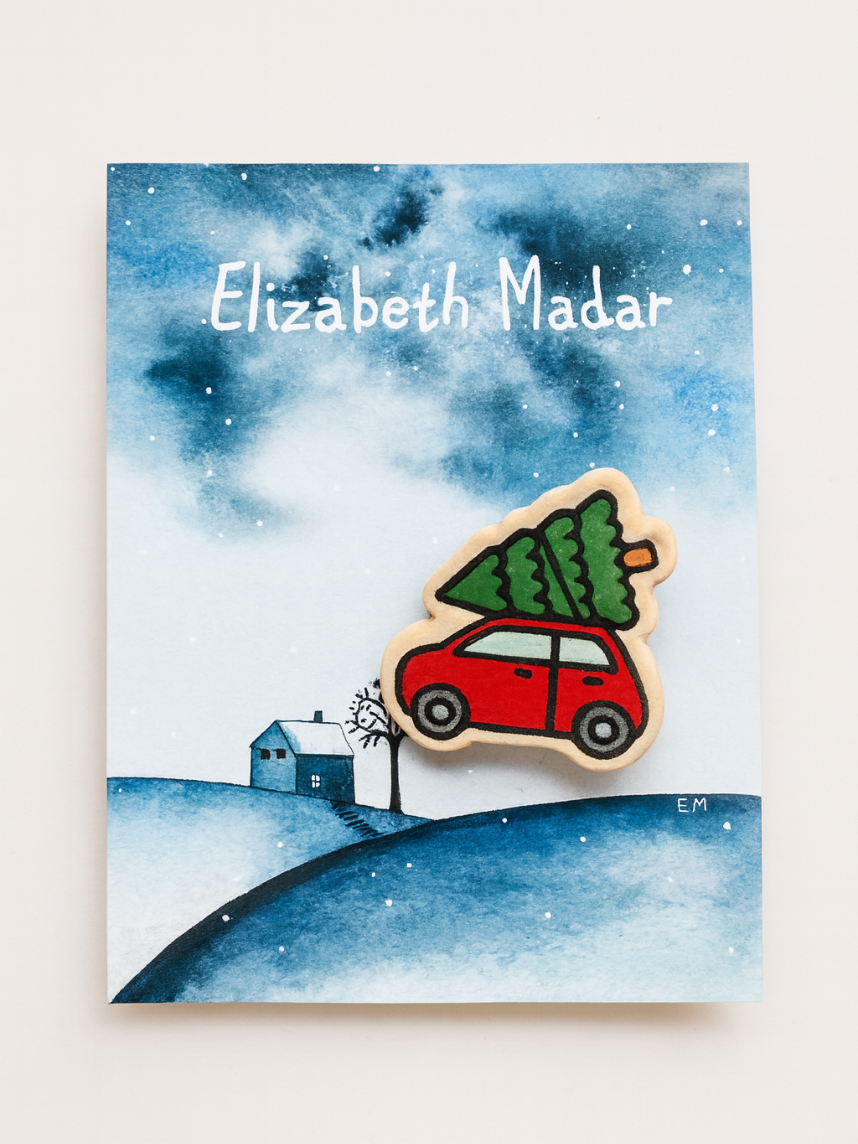 Брошь в виде машинки, которая везет ёлочку на Новый год - отличный подарок для больших и маленьких любителей прекрасного!