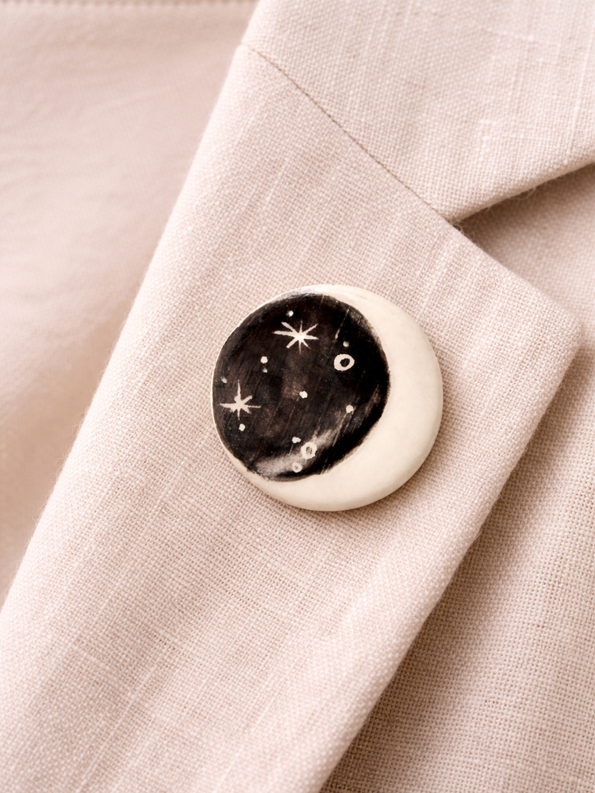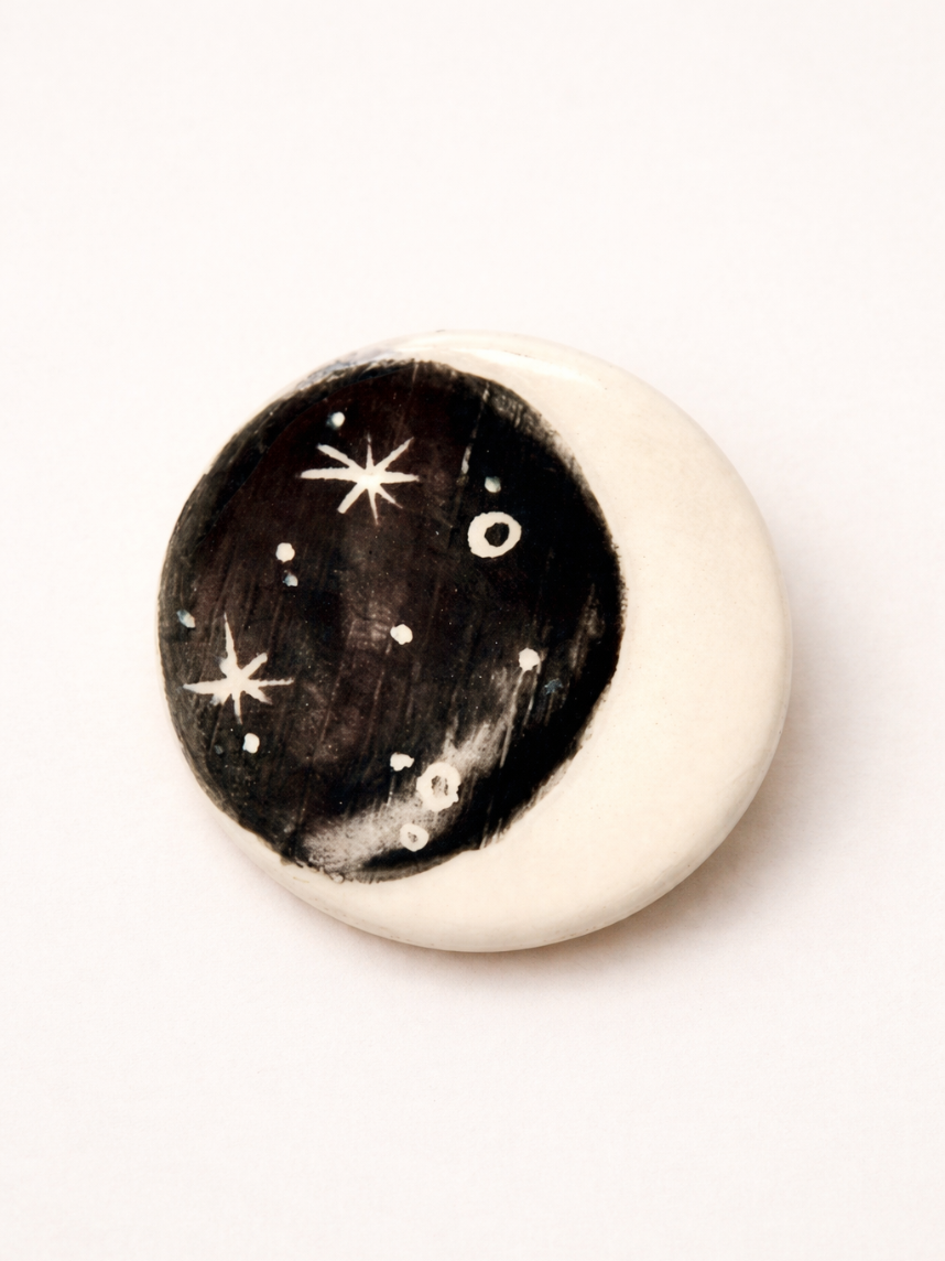 Брошь ручной работы Elizabeth Madar Месяц, круглая, керамика