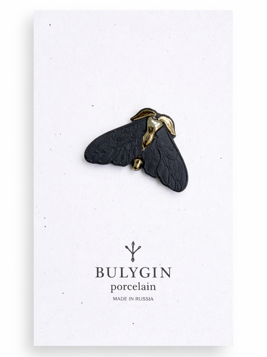Брошь ручной работы Bulygin «Моль», фарфор, чёрно-серебристая