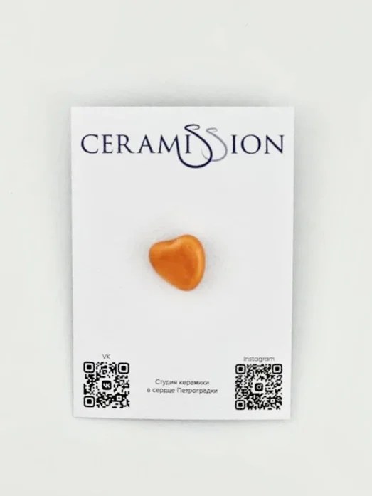 Керамическая брошь «Оранжевое сердечко» от петербургского бренда Ceramission. Ручная работа. Размер броши: 40 х 35 мм, что делает ее заметной и выразительной на одежде или аксессуаре.