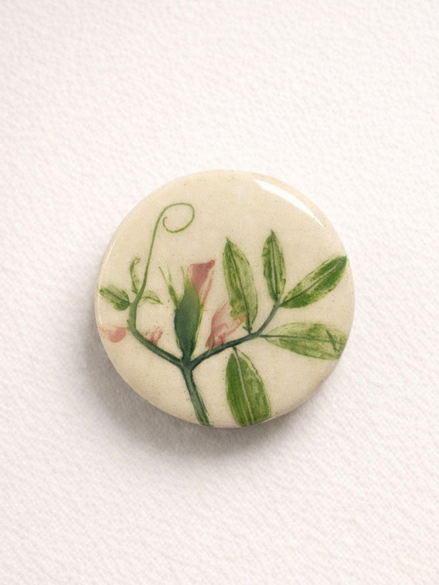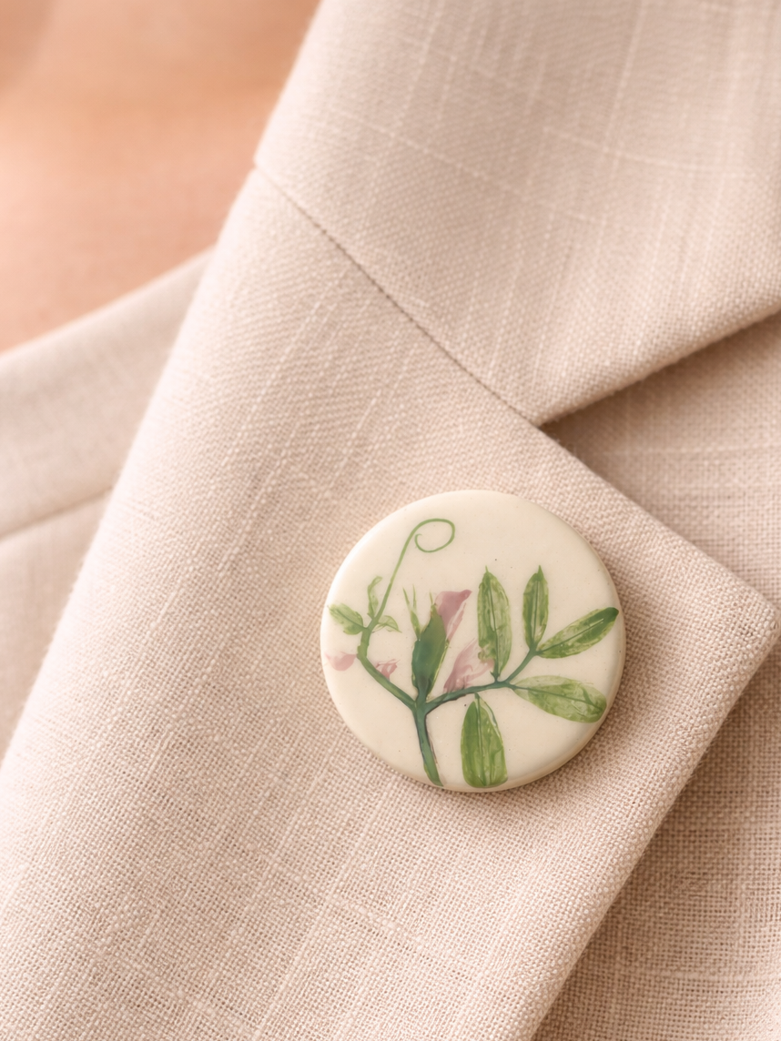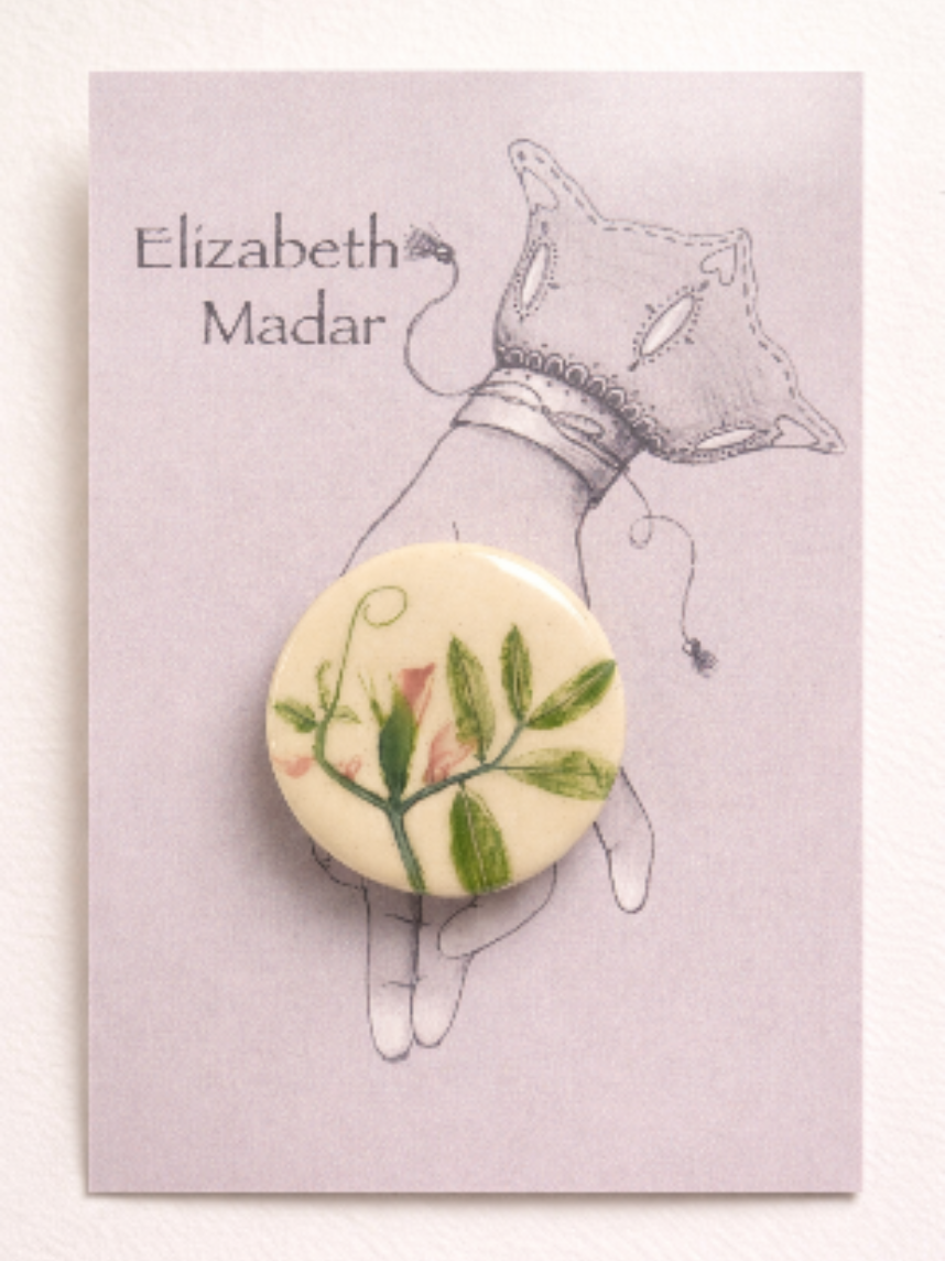 Брошь ручной работы Elizabeth Madar Оттиск трав, керамика