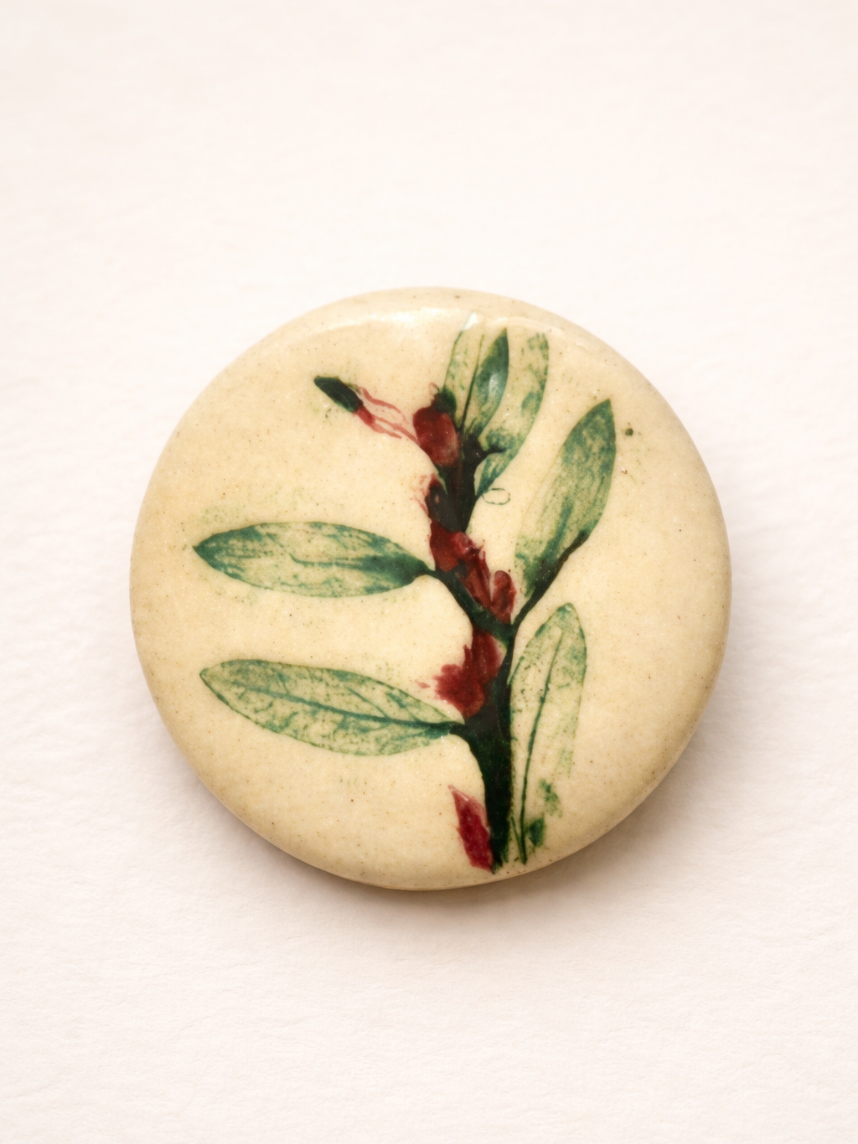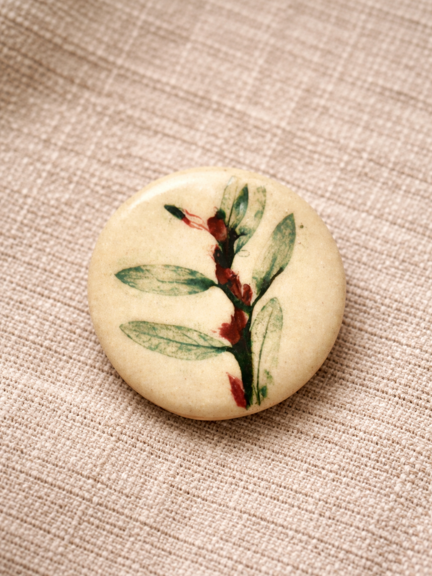 Брошь ручной работы Elizabeth Madar Оттиск трав, зеленая № 1, керамика