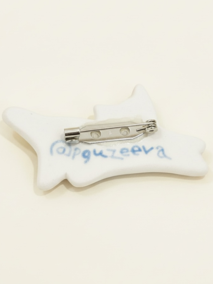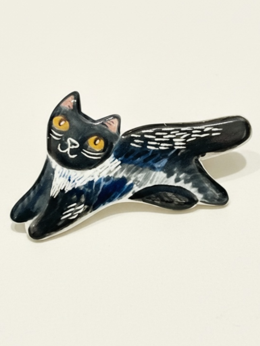 Брошь ручной работы Полина Гузеева «Чёрный котик», фарфор