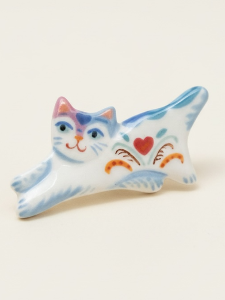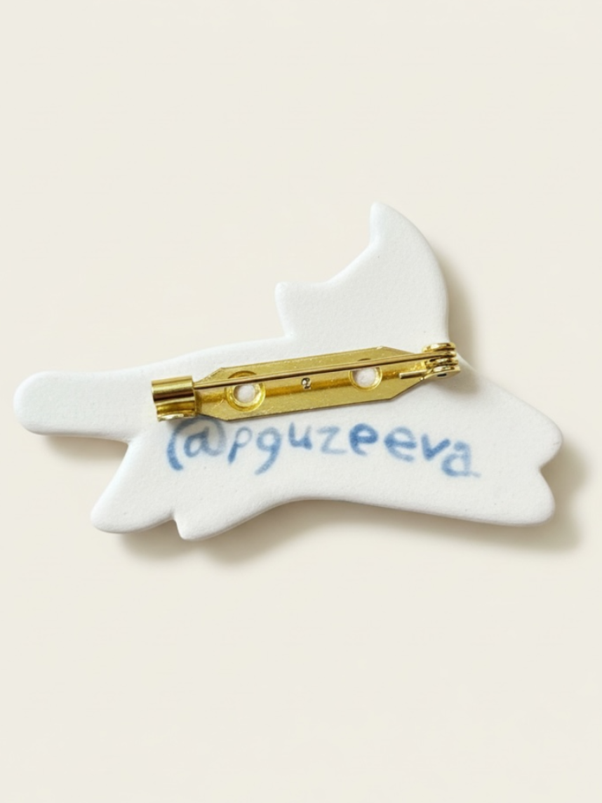 Брошь ручной работы Полина Гузеева «Котик с сердечком», голубая, фарфор