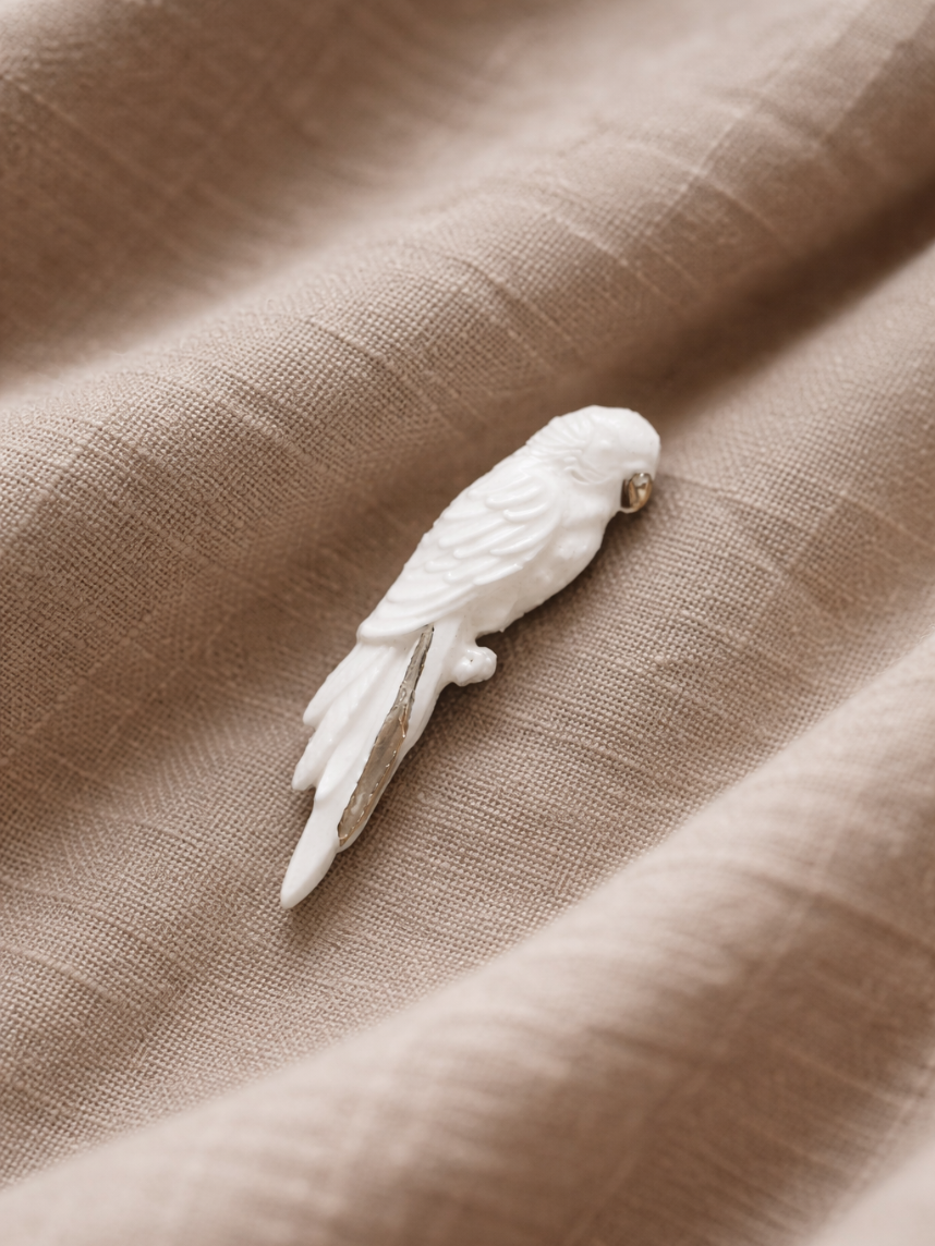 Брошь ручной работы Bulygin «Попугай», бело-серебристая, фарфор