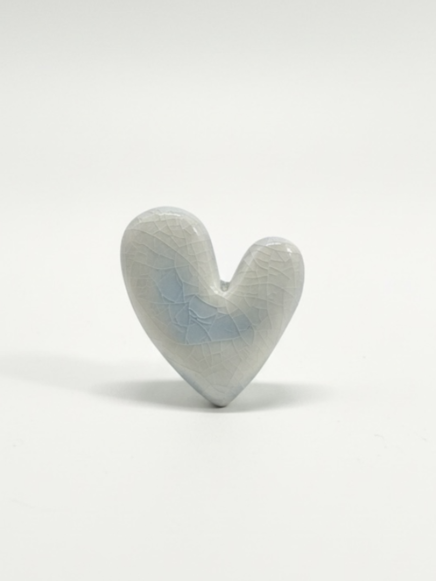 Брошь ручной работы «Пухлое сердце», светло-голубая, керамика