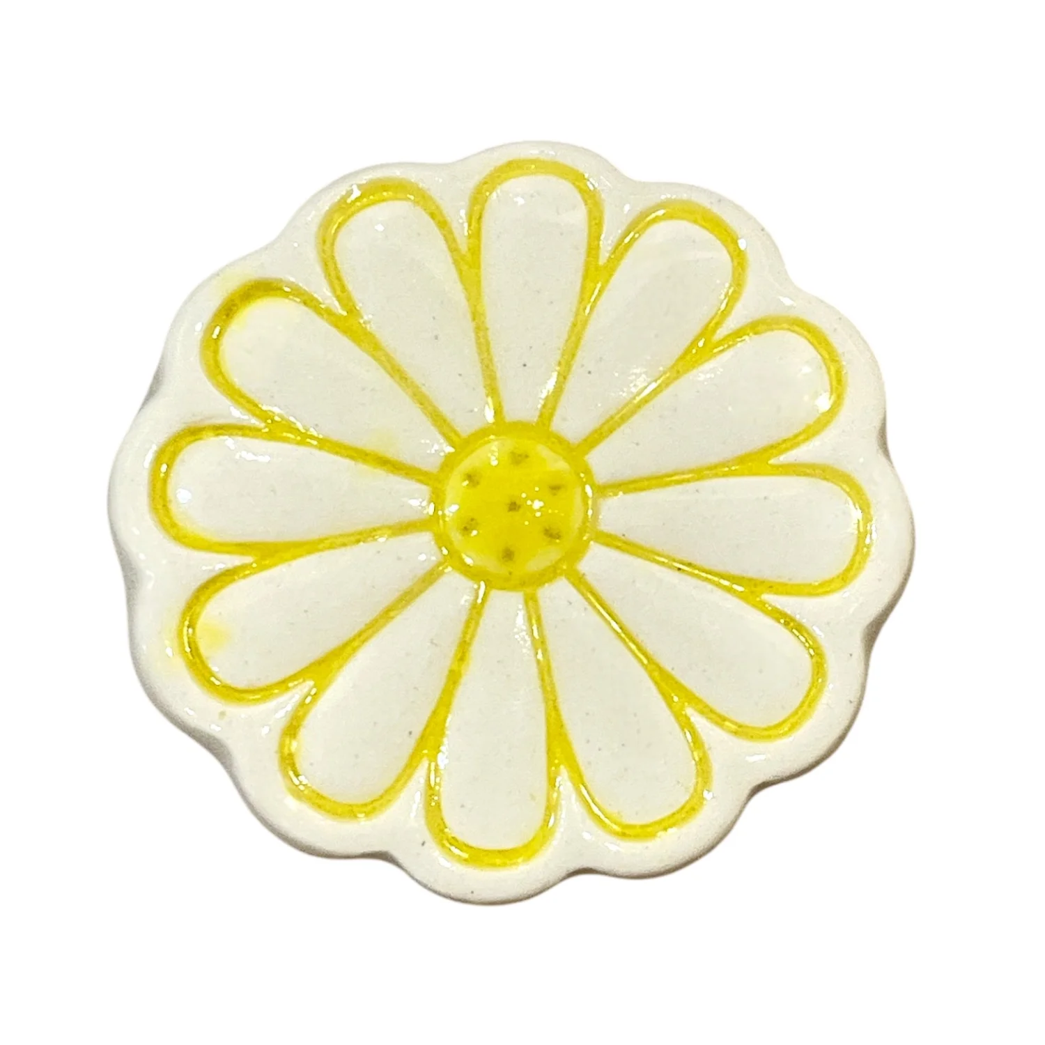 Керамическая брошь «Ромашка» от петербургского бренда Ceramission. Ручная работа. Размер броши: 40 х 35 мм, что делает ее заметной и выразительной на одежде или аксессуаре.