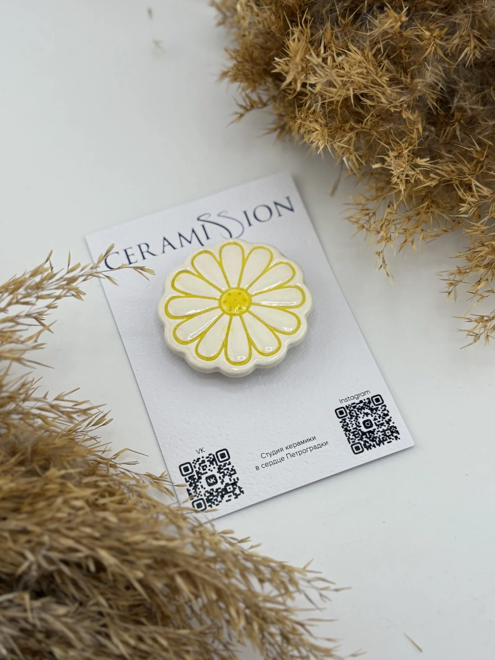 Брошь ручной работы Ceramission «Ромашка», керамика