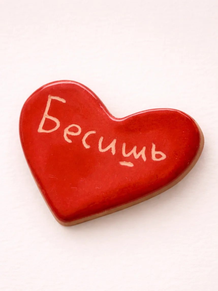 Маленькая аккуратная брошь примерно 3 см в виде сердца с надписью «Бесишь». Миниатюрный символ любви на вашем пальто, сумке или в качестве элемента декора подчеркнет вашу индивидуальность.