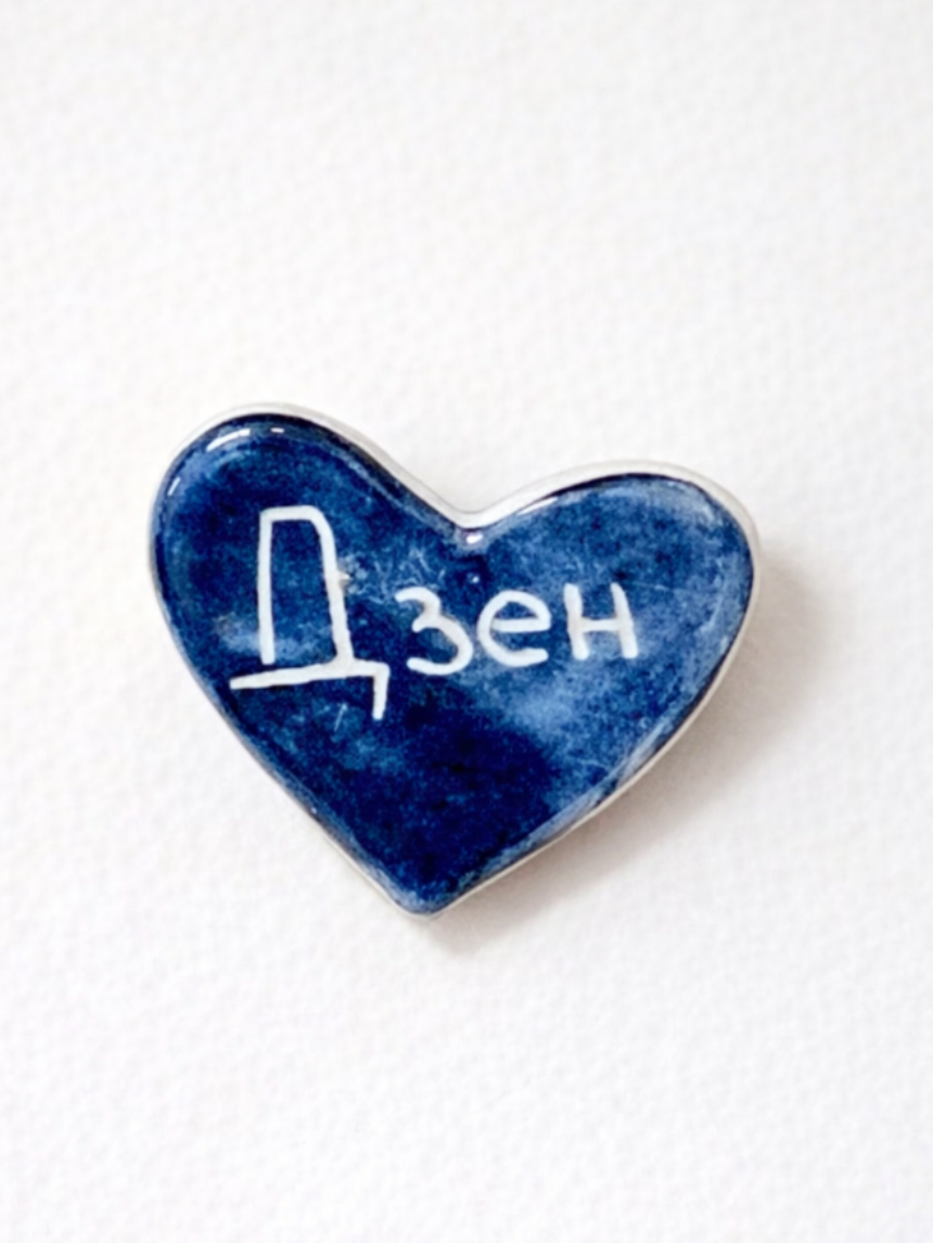 Брошь ручной работы Elizabeth Madar сердечко «Дзен», тёмно-синяя, керамика
