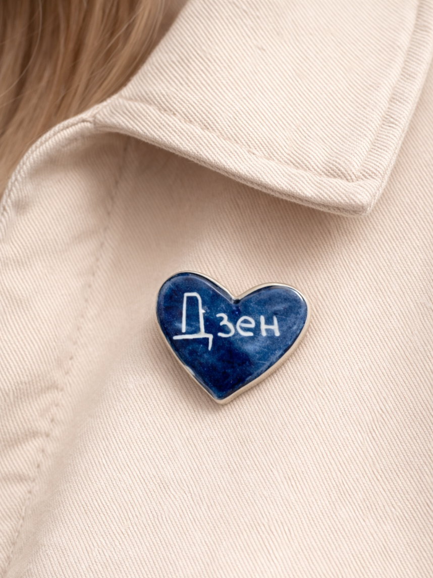 Маленькая аккуратная брошь в виде сердца с надписью «Дзен». Миниатюрный символ любви на вашем пальто, сумке или в качестве элемента декора подчеркнет вашу индивидуальность.
