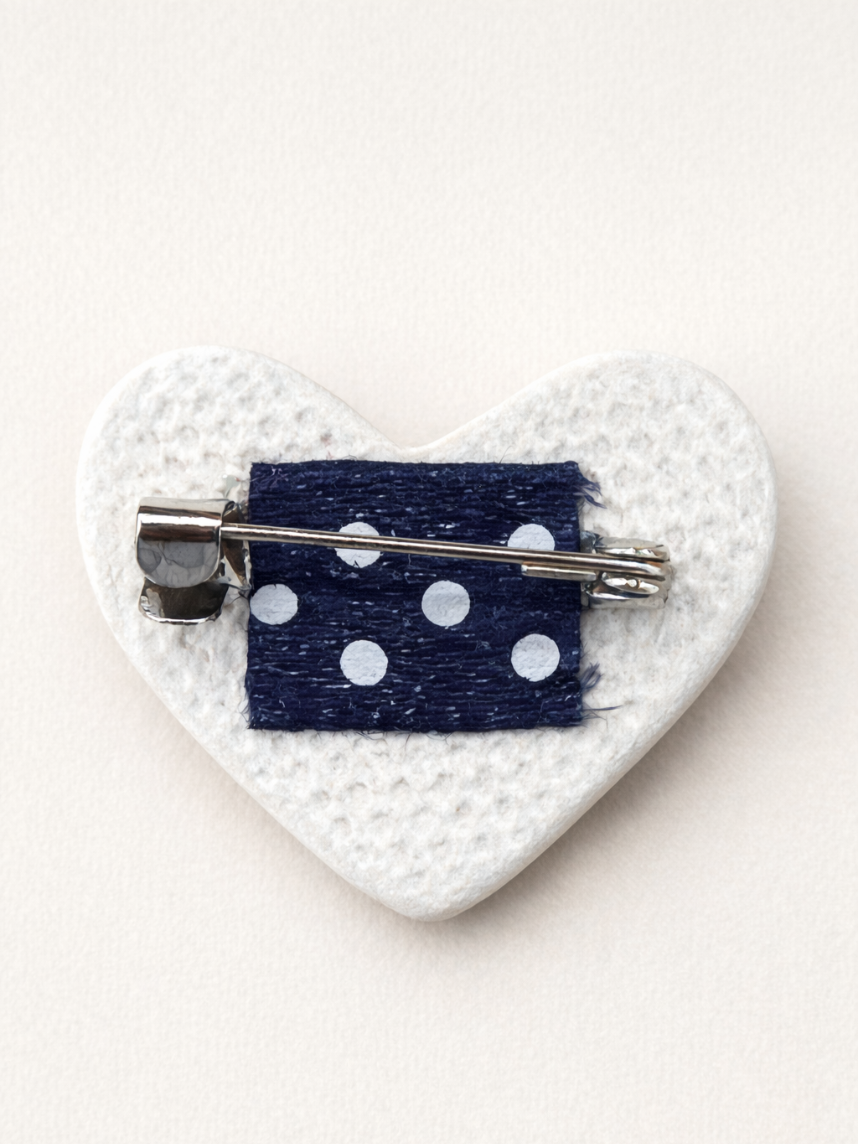 Брошь выполнена из керамики и покрыта глянцевой глазурью.