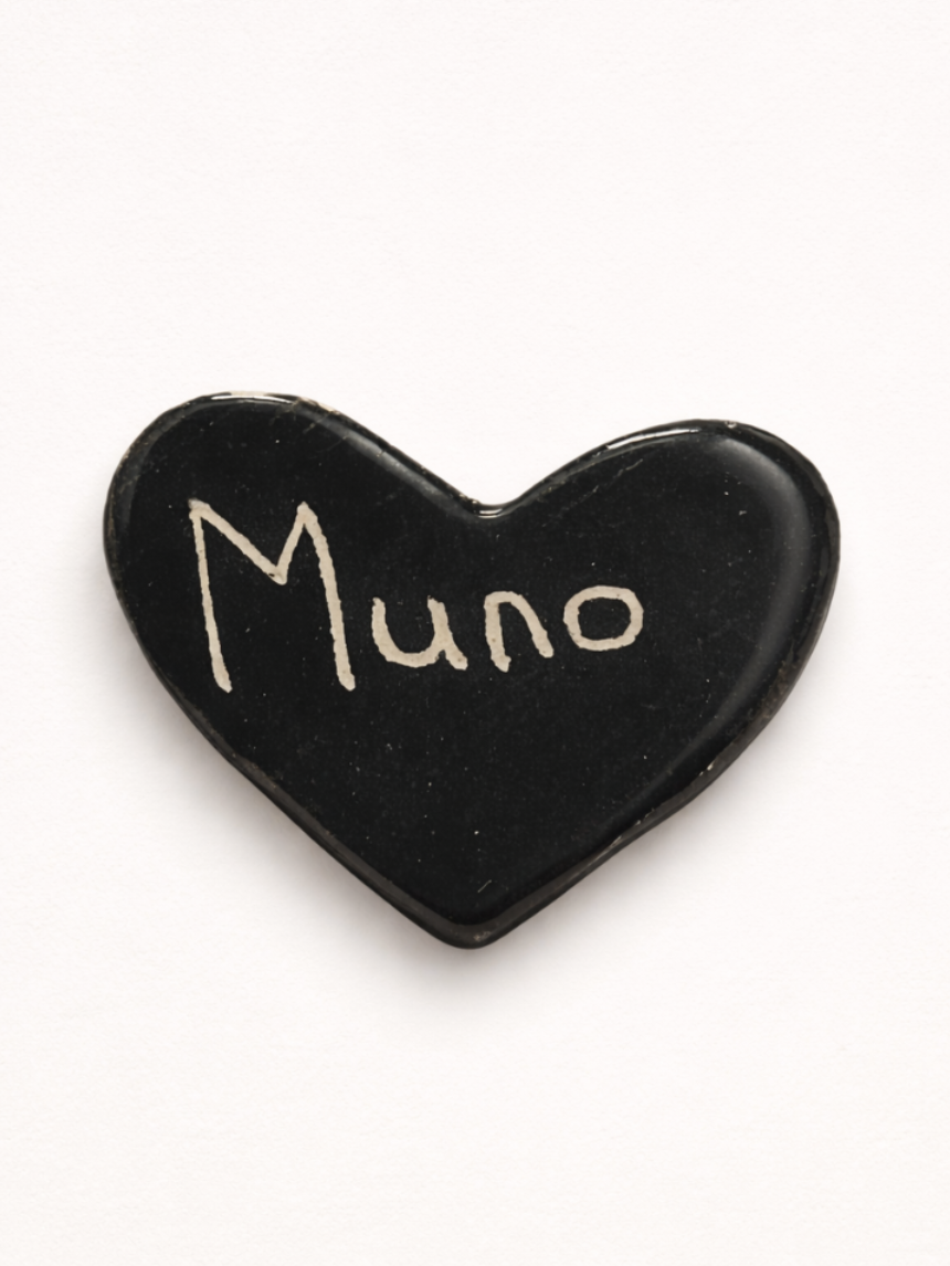 Брошь ручной работы сердечко «Мило», чёрная, керамика