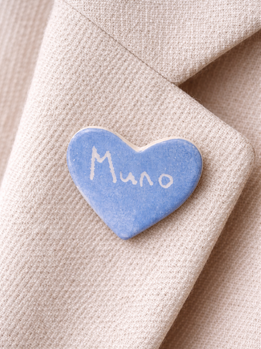 Брошь ручной работы сердечко «Мило», голубая, керамика