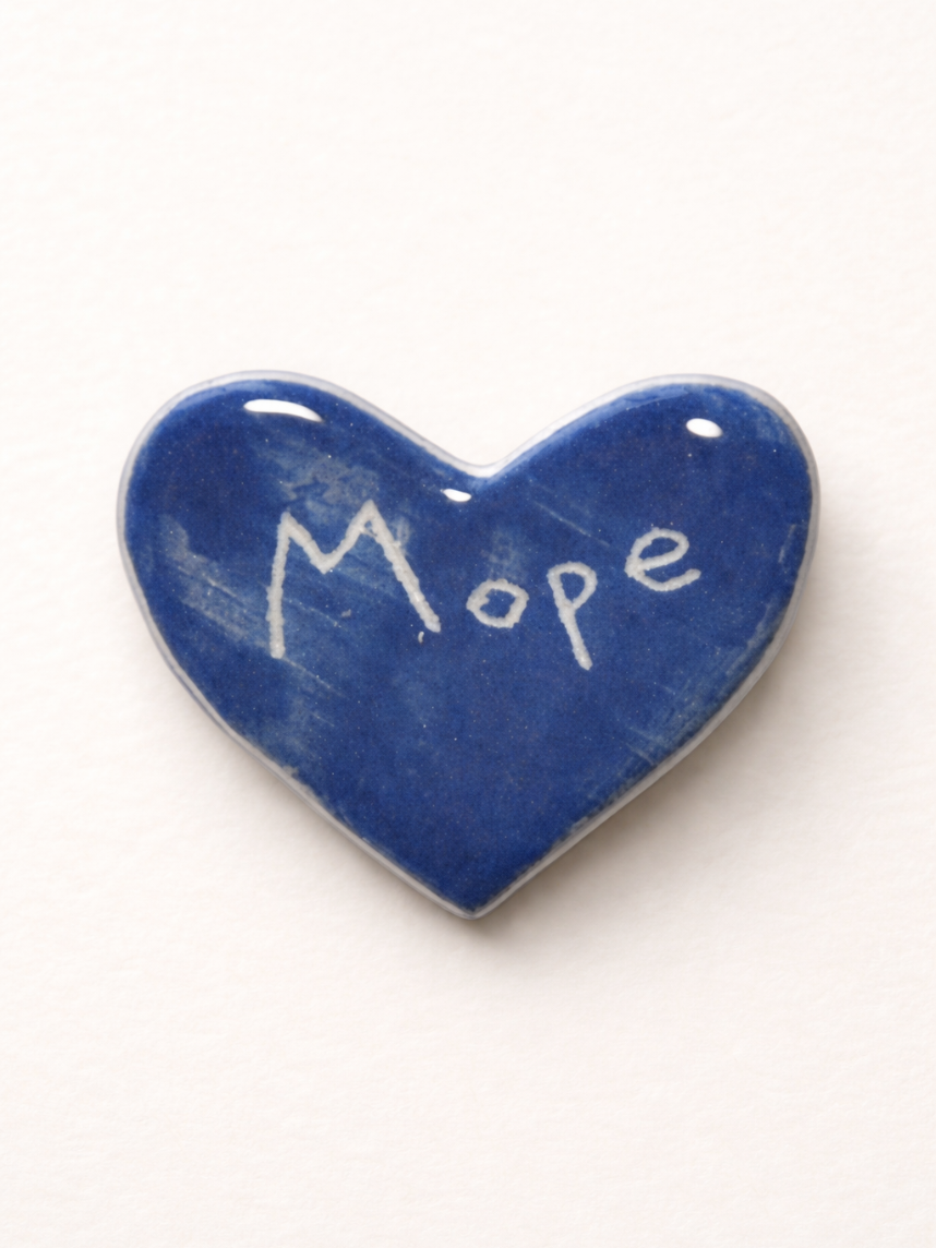 Брошь ручной работы сердечко «Море», синяя, керамика