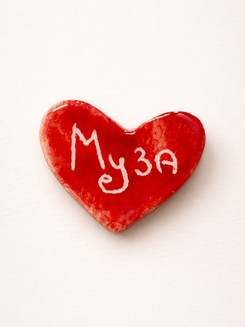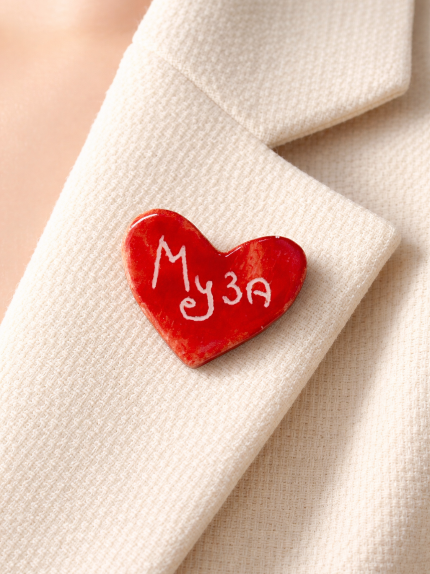 Маленькая аккуратная брошь в виде сердца с надписью «Муза». Миниатюрный символ любви на вашем пальто, сумке или в качестве элемента декора подчеркнет вашу индивидуальность.