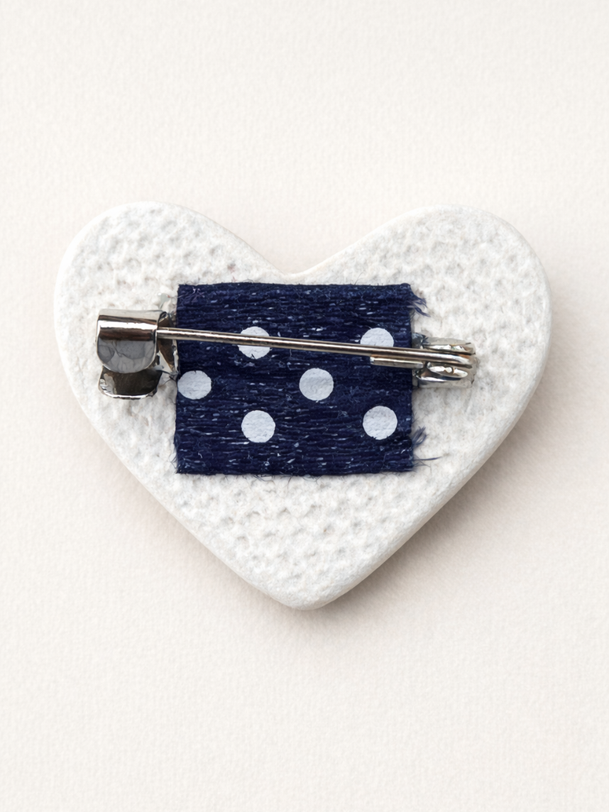 Брошь выполнена из керамики и покрыта глянцевой глазурью.