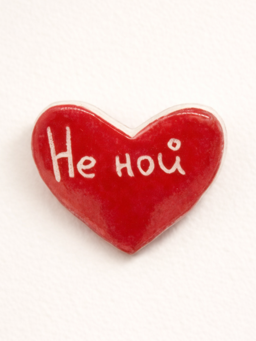 Маленькая аккуратная брошь примерно 3см в виде сердца с надписью "Не ной". Миниатюрный символ любви на вашем пальто, сумке или в качестве элемента декора подчеркнет вашу индивидуальность.