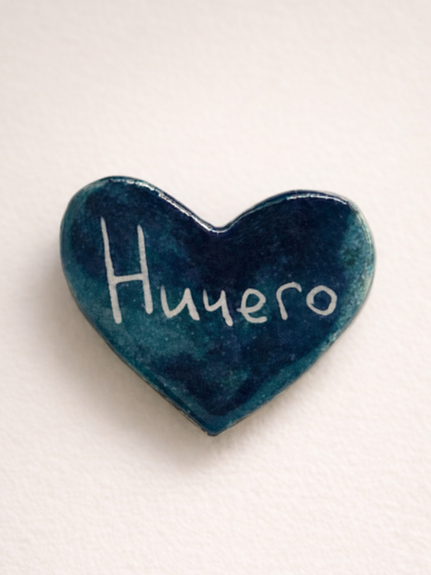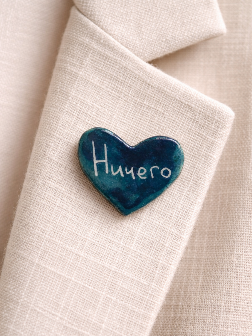 Брошь ручной работы Elizabeth Madar сердечко «Ничего», тёмно-синяя, керамика
