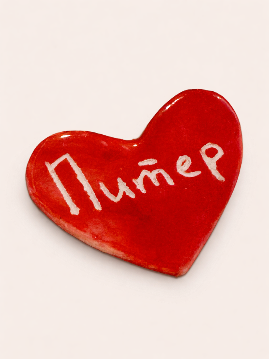 Брошь ручной работы Elizabeth Madar сердечко «Питер», красный, керамика