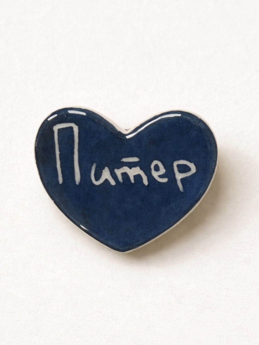 Брошь ручной работы Elizabeth Madar сердечко «Питер», тёмно-синяя, керамика