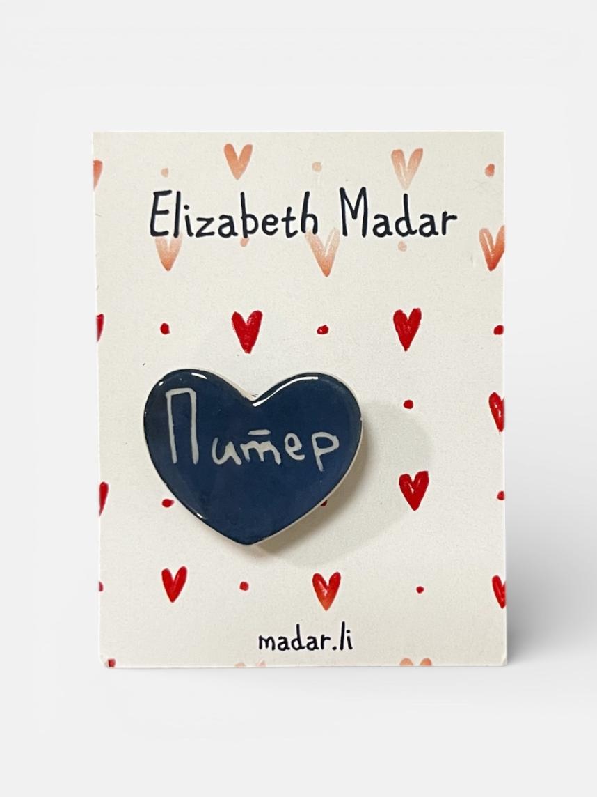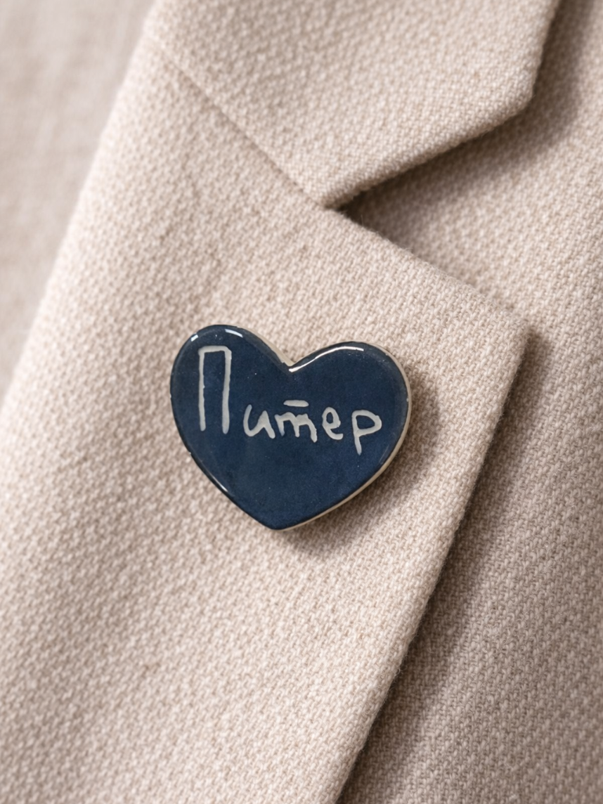 Маленькая аккуратная брошь примерно 3 см в виде сердца с надписью «Питер». Миниатюрный символ любви на вашем пальто, сумке или в качестве элемента декора подчеркнет вашу индивидуальность.