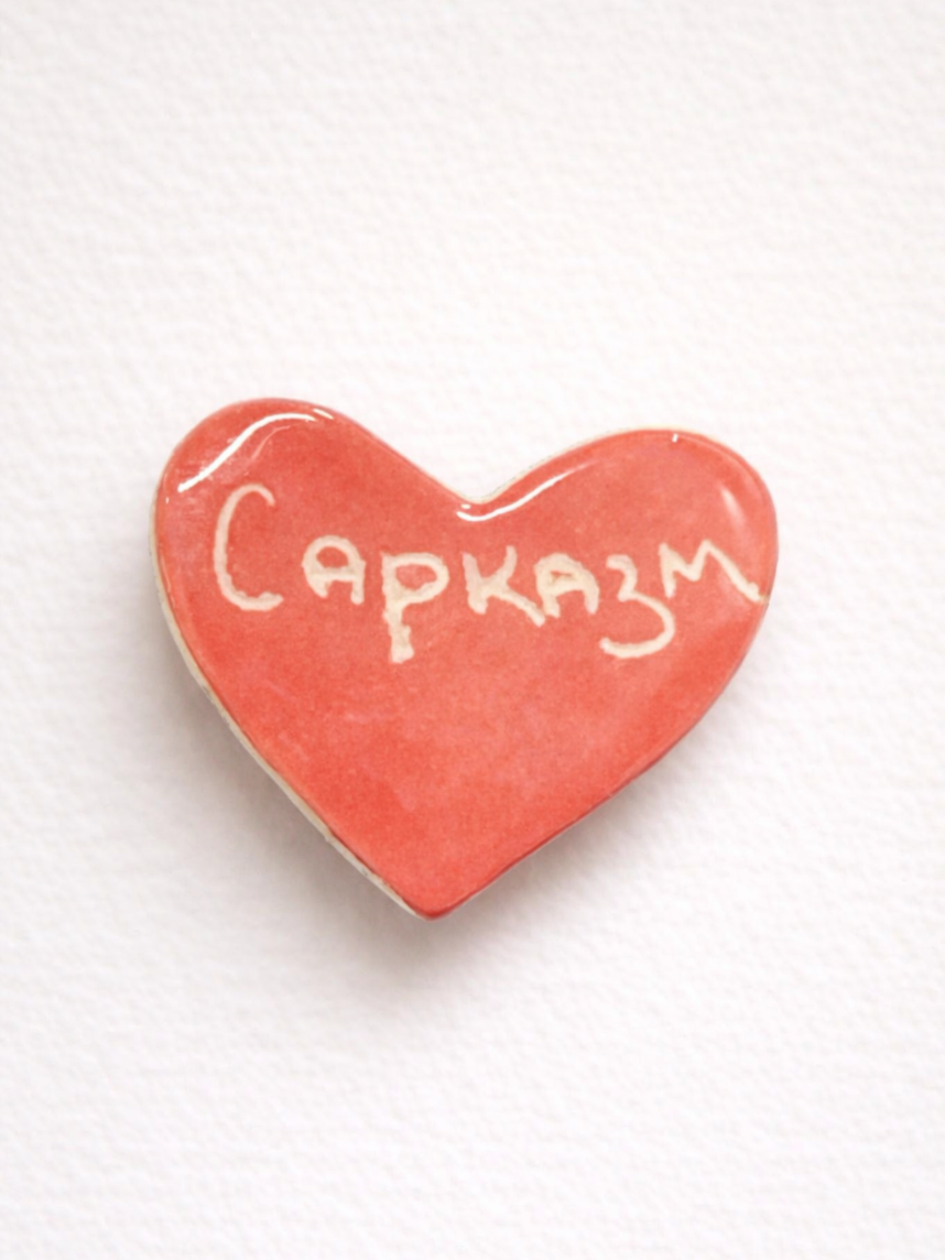 Маленькая аккуратная брошь в виде сердца с надписью «Сарказм». Миниатюрный символ любви на вашем пальто, сумке или в качестве элемента декора подчеркнет вашу индивидуальность.