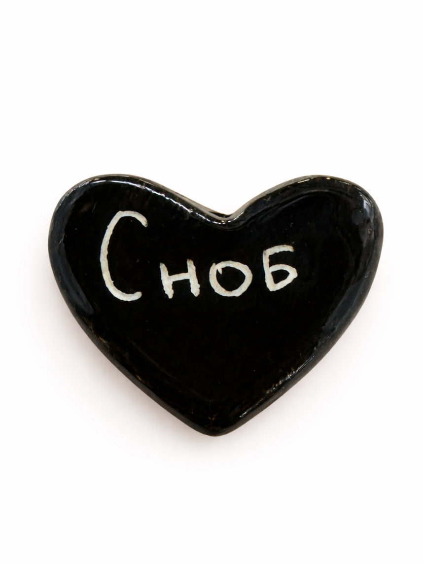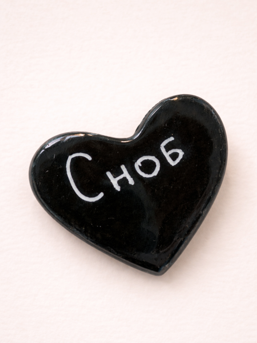 Брошь ручной работы Elizabeth Madar сердечко «Сноб», чёрный, керамика