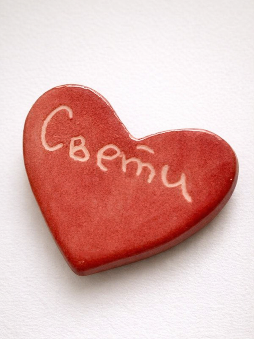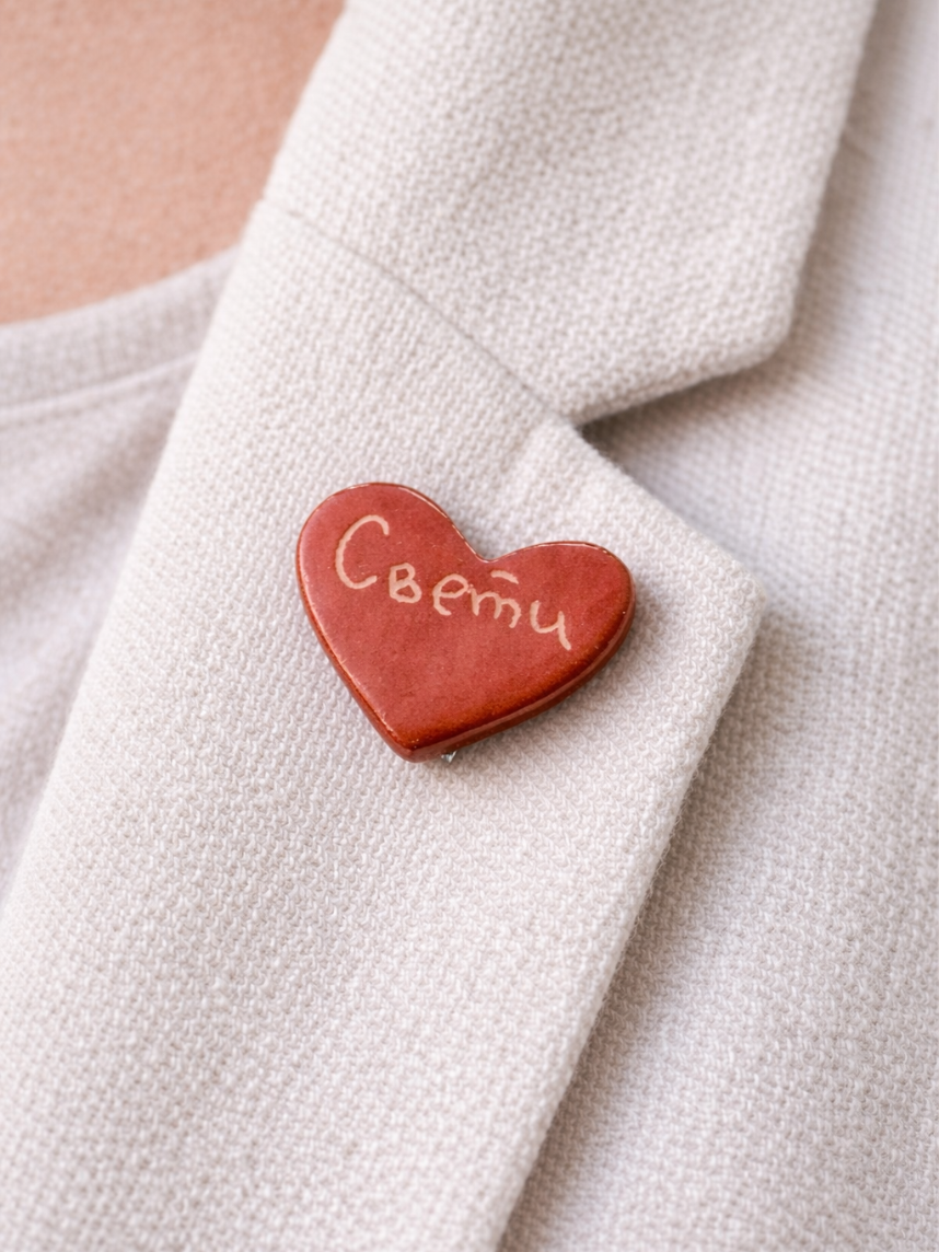 Маленькая аккуратная брошь примерно 3 см в виде сердца с надписью «Свети». Миниатюрный символ любви на вашем пальто, сумке или в качестве элемента декора подчеркнет вашу индивидуальность.