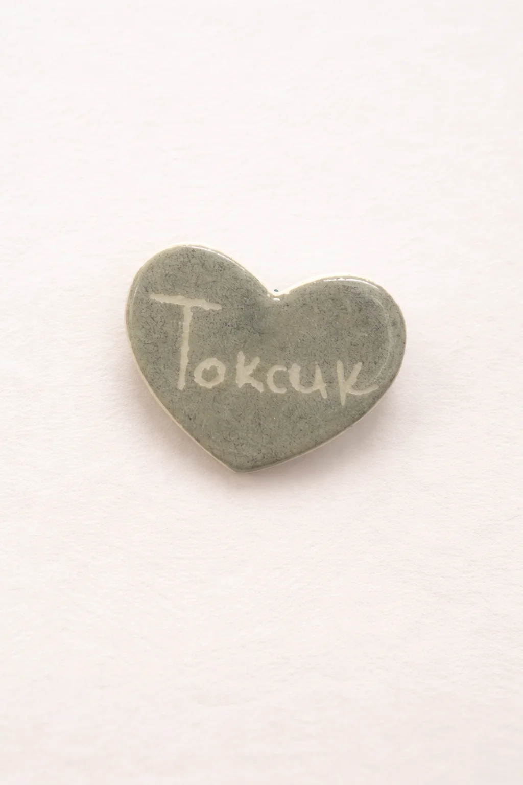 Маленькая аккуратная брошь примерно 3 см в виде сердца с надписью «Токсик». Миниатюрный символ любви на вашем пальто, сумке или в качестве элемента декора подчеркнет вашу индивидуальность.