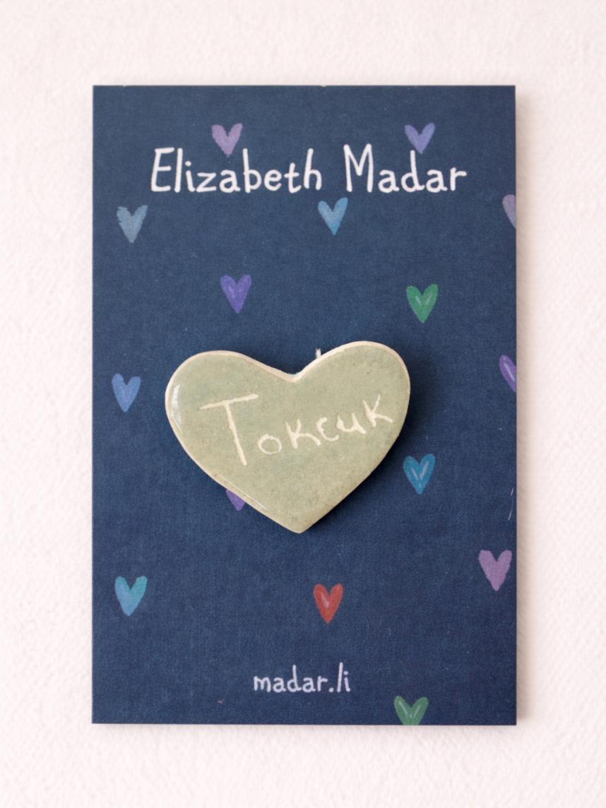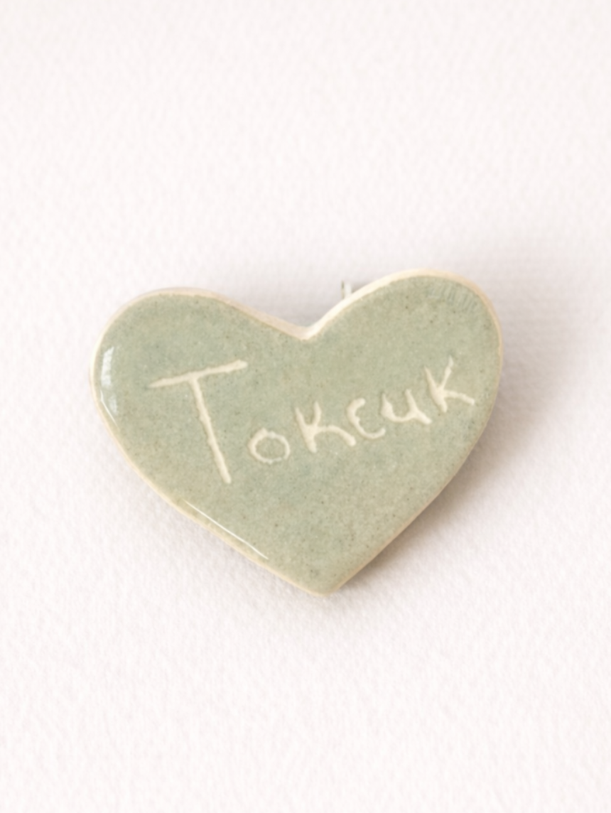 Брошь ручной работы Elizabeth Madar сердечко «Токсик», светло-зелёный, керамика