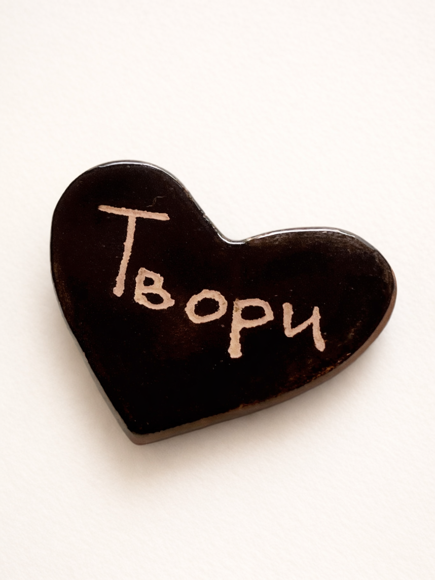 Брошь ручной работы сердечко «Твори», черный, керамика