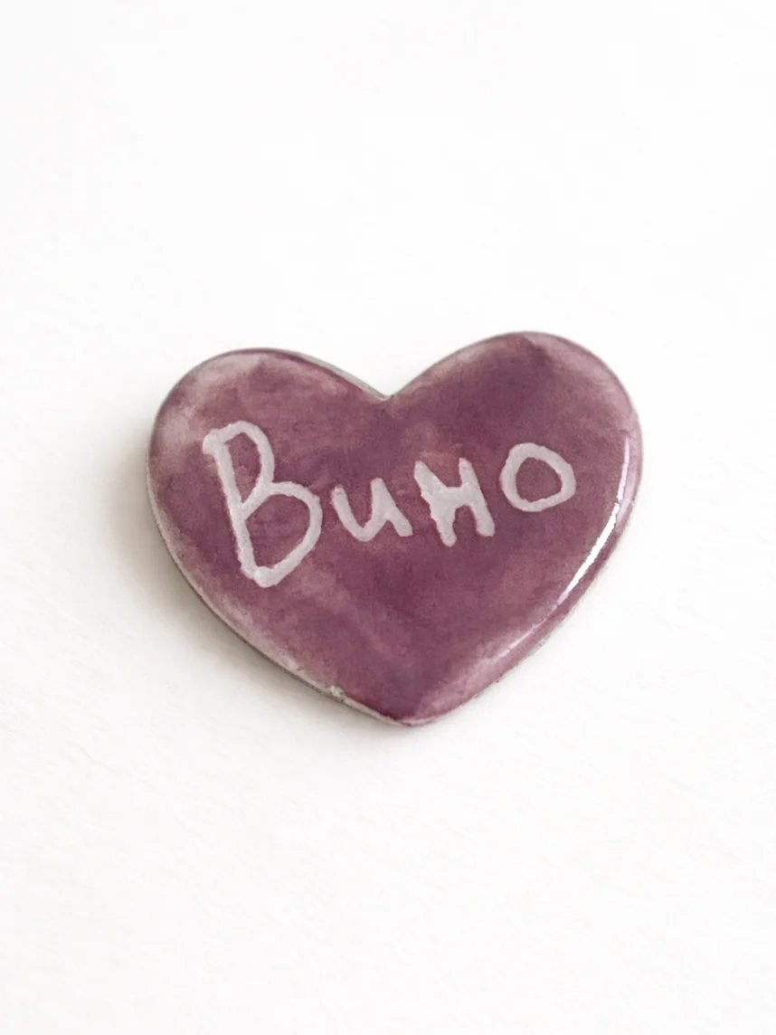 Маленькая аккуратная брошь примерно 3 см в виде сердца с надписью «Вино». Миниатюрный символ любви на вашем пальто, сумке или в качестве элемента декора подчеркнет вашу индивидуальность.