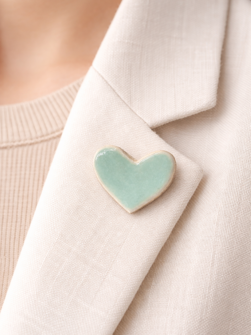 Брошь ручной работы Elizabeth Madar Сердце, мятная, керамика