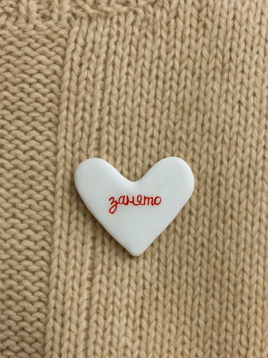 Брошь «Сердце» создана из полимерной глины вручную от бренда Serdce govorit.