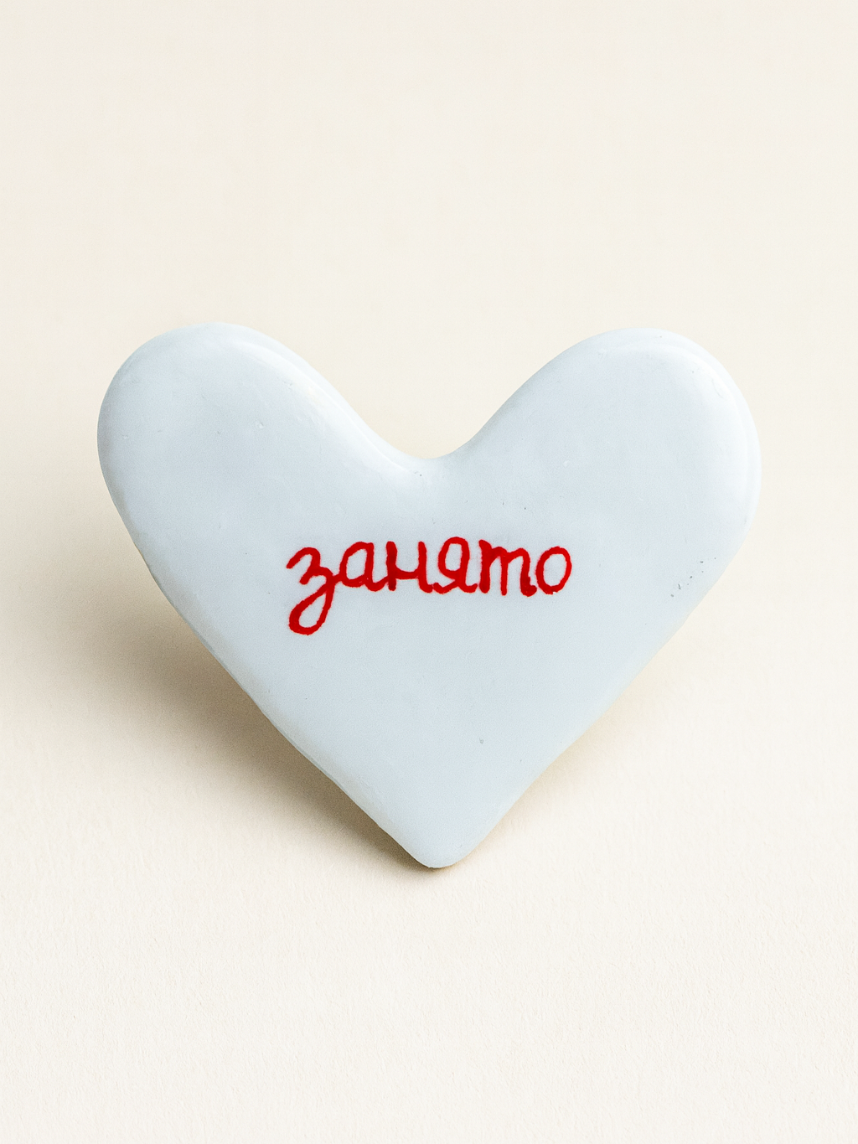Брошь ручной работы Сердце с надписью «Занято», полимерная глина