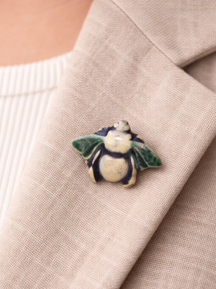 Брошь ручной работы Elizabeth Madar Шмель, сине-зелёная, керамика