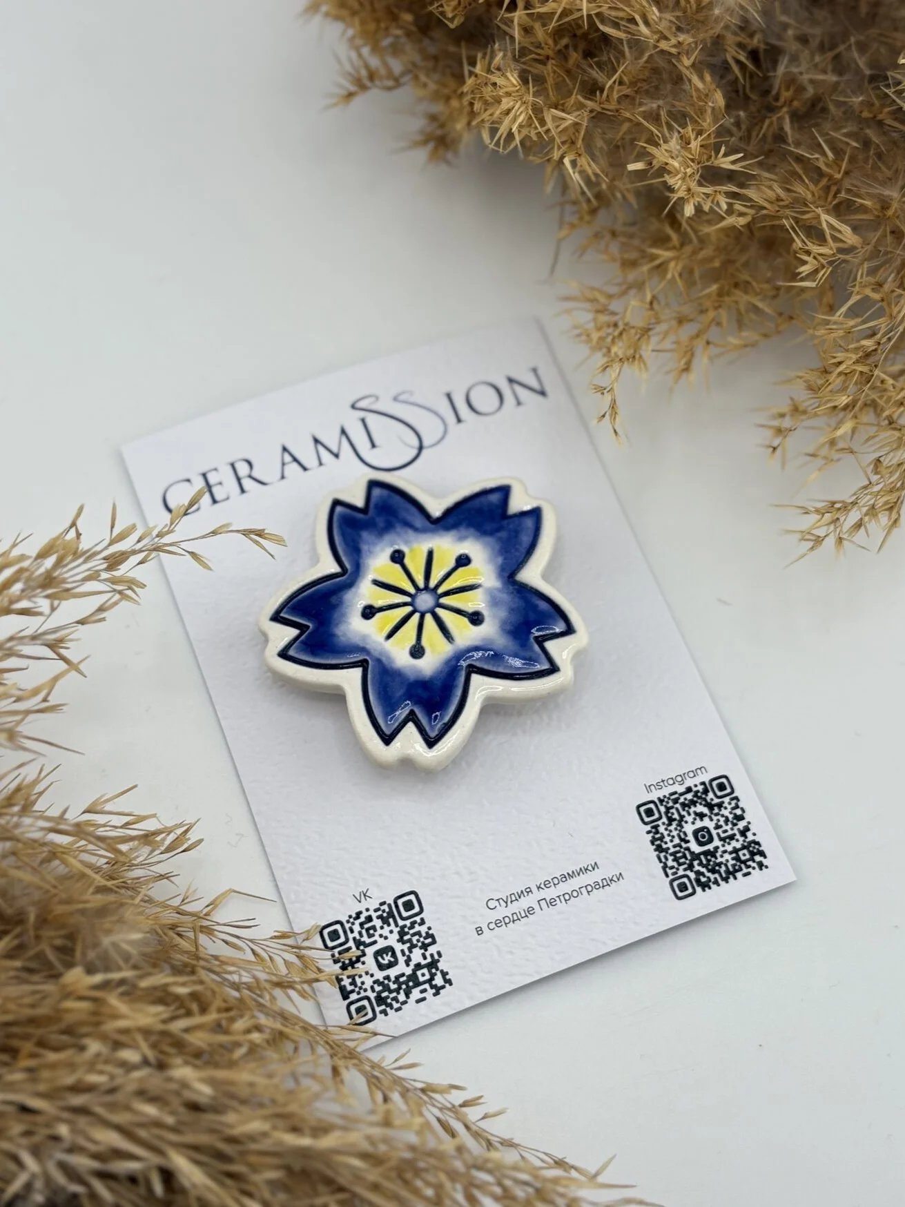 Брошь ручной работы Ceramission «Синий цветочек», керамика