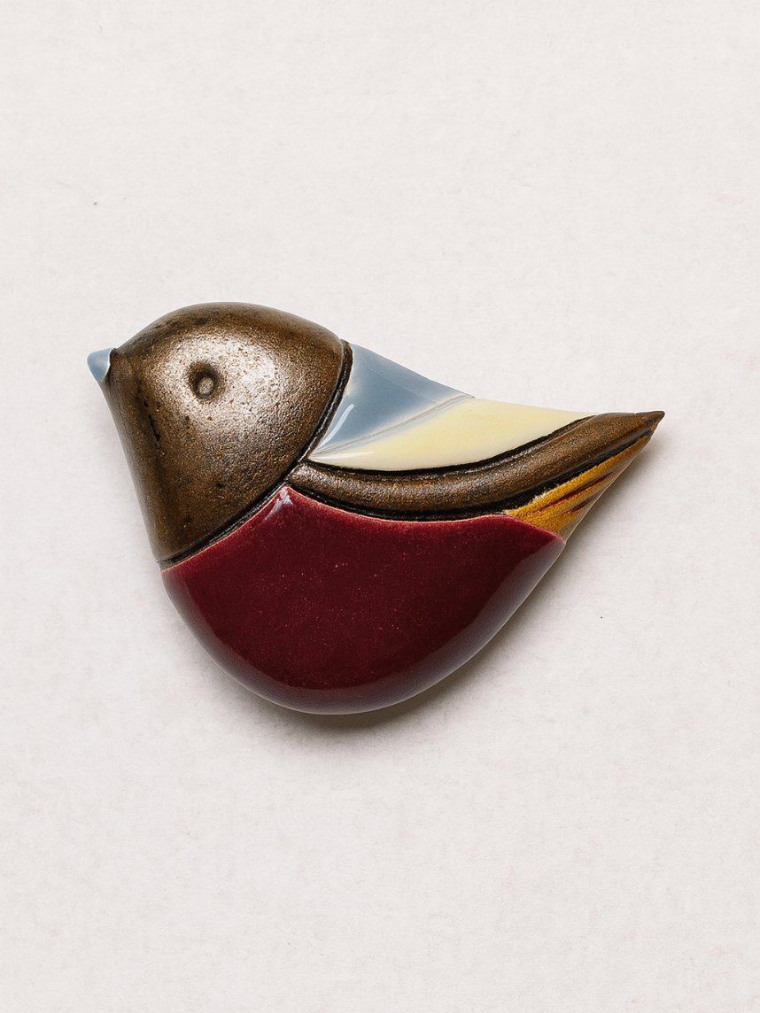 Брошь ручной работы «Снегирь», бордовая, керамика