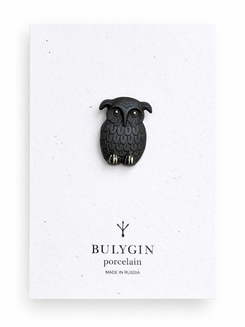 Брошь ручной работы Bulygin «Сова», фарфор, чёрно-серебристая