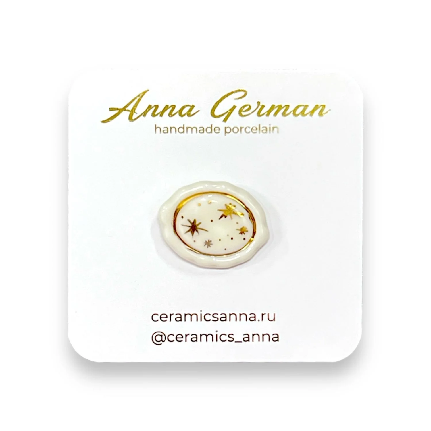Брошь ручной работы Анна Герман «Тарелочка со звёздами», фарфор
