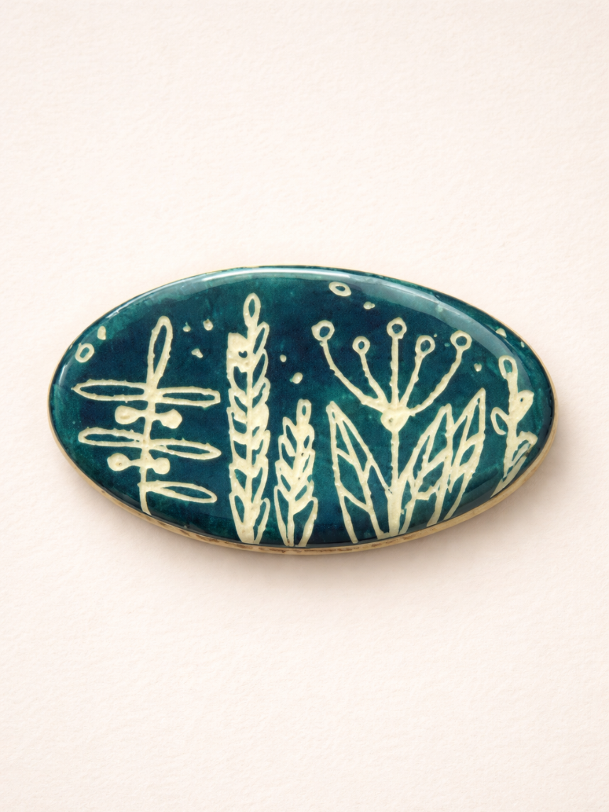 Брошь ручной работы Elizabeth Madar Цветочный орнамент, овальная, синяя, керамика