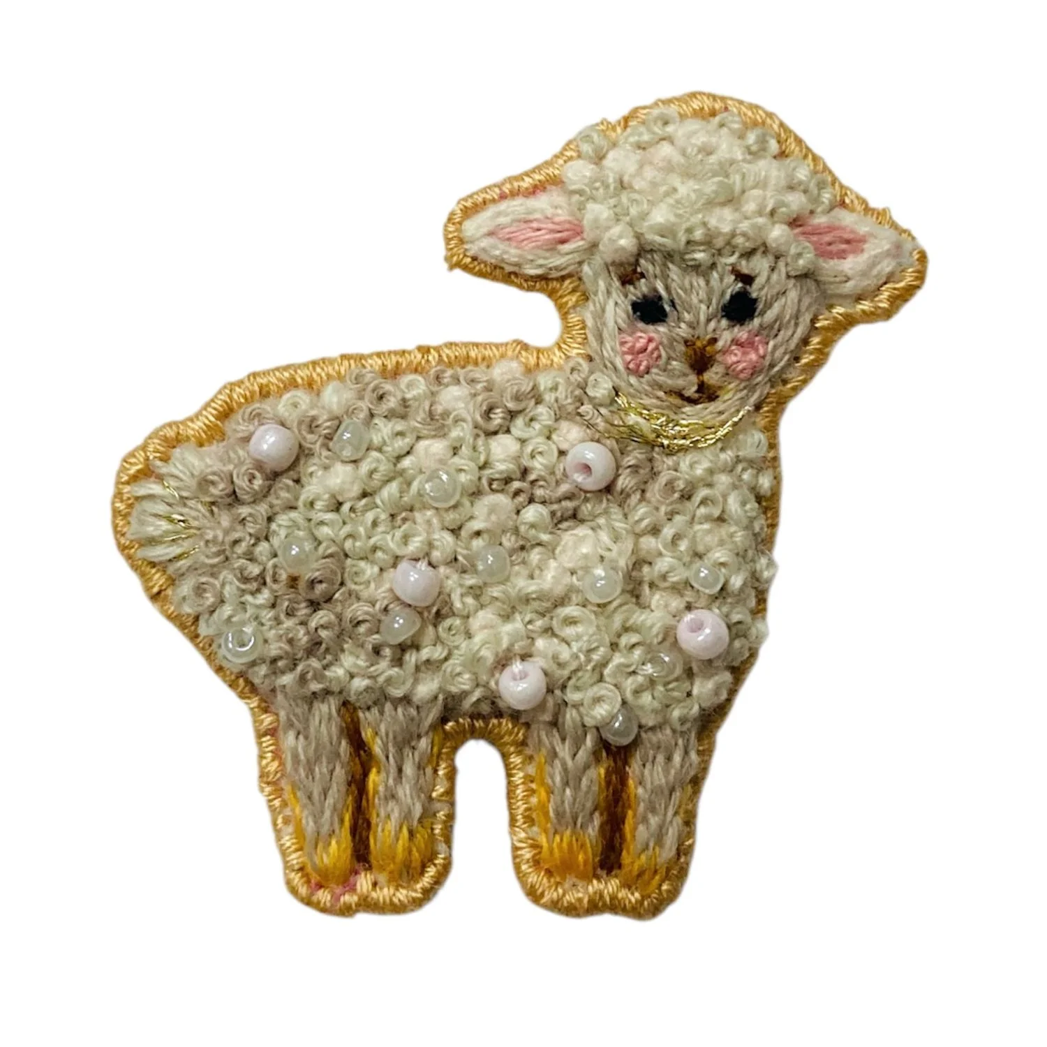 Брошь с ручной вышивкой «Барашек», светло-серая