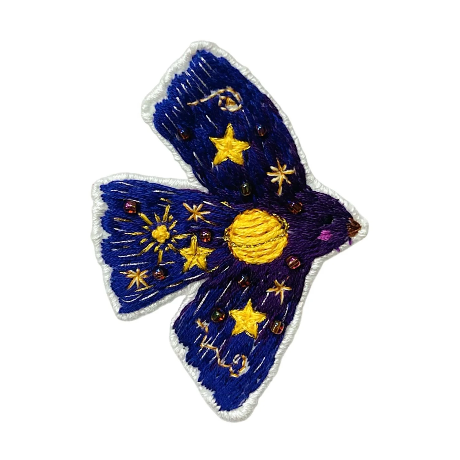 Брошь с ручной вышивкой «Птица», фиолетовая