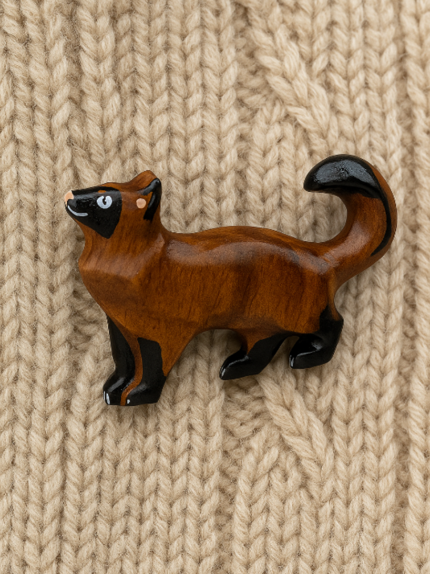 Брошь «Сиамский кот» - это уникальное изделие ручной работы, выполненное из дерева и украшенное росписью. Она станет отличным подарком для любителей живой природы.