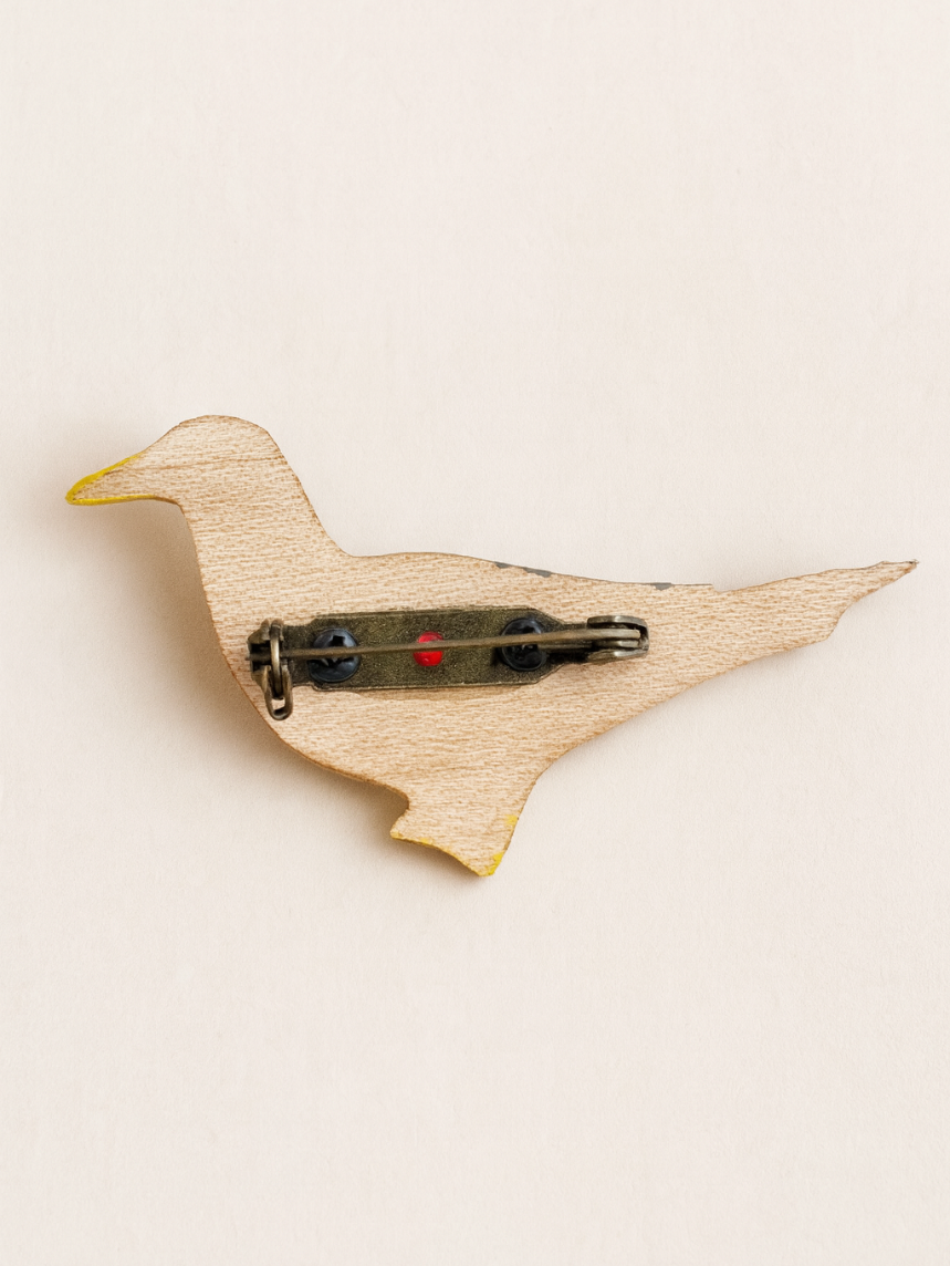 Брошь «Скворец» от бренда Free in tree - деревянная ручной работы с росписью. Это идеальный аксессуар для любителей живой природы.