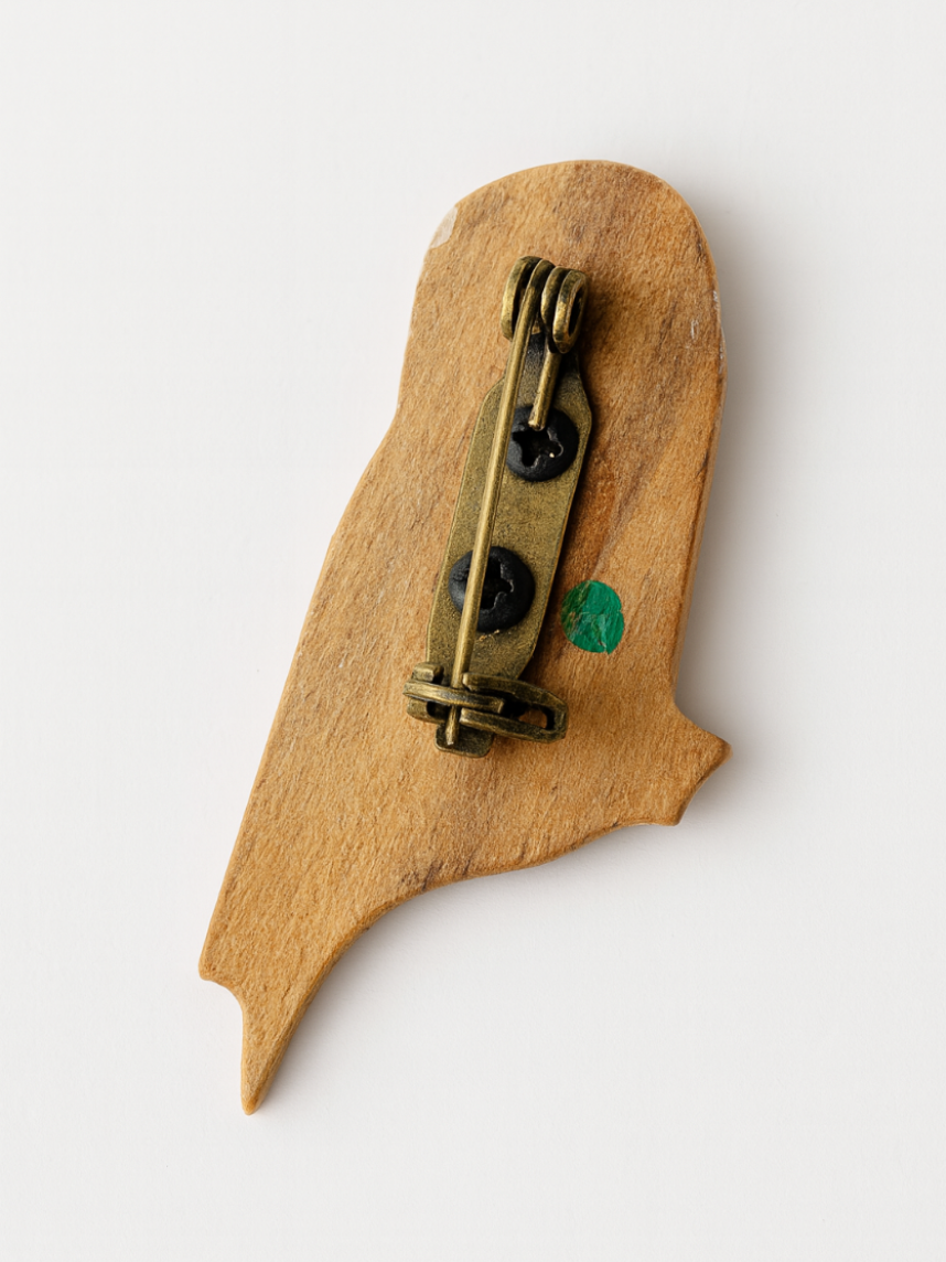 Брошь выполнена из натурального дерева, что придает ей особую прочность и уникальность. Ручная роспись делает каждую брошь уникальной и неповторимой. Благодаря своему минималистичному дизайну, она подойдет как для повседневного использования, так и для особых случаев.