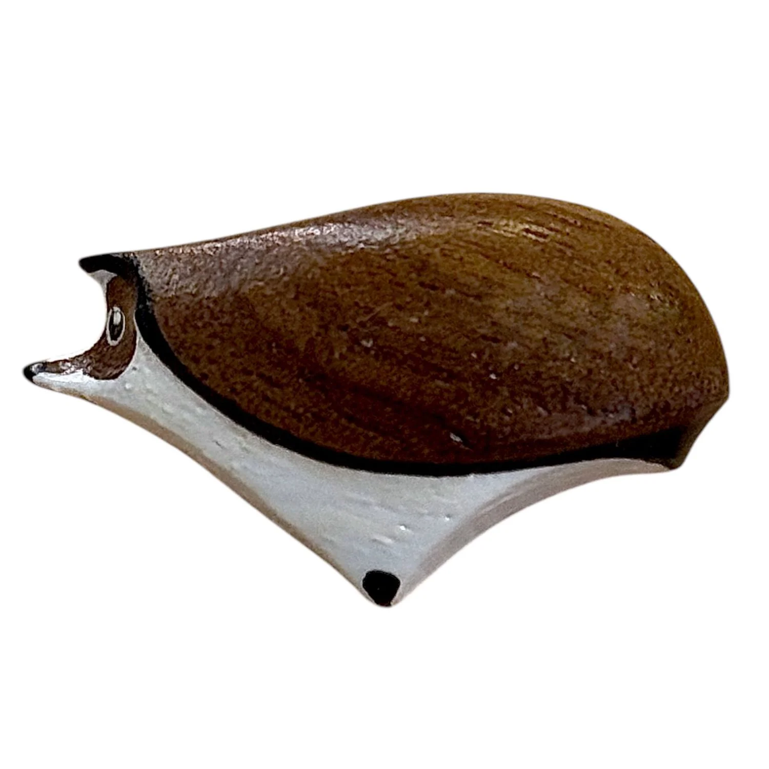 Брошь «Ёжик» от бренда Free in tree - деревянная ручной работы с росписью. Это идеальный аксессуар для любителей живой природы.
