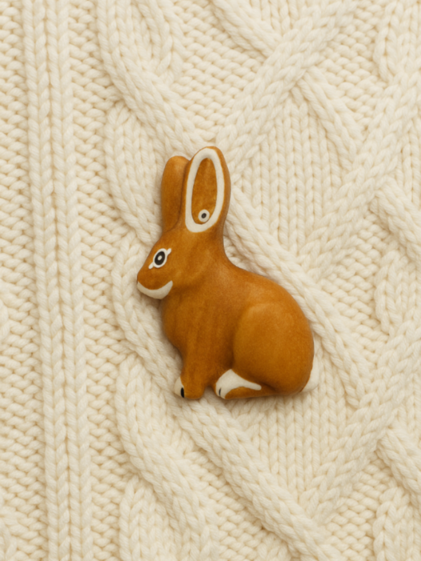Брошь «Заяц» от бренда Free in tree - деревянная ручной работы с росписью. Это идеальный аксессуар для любителей живой природы.
