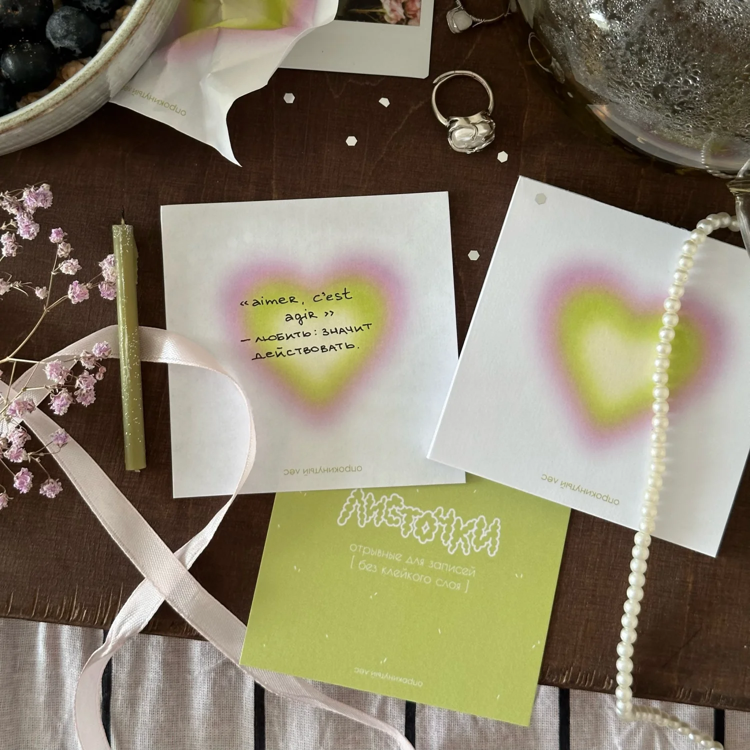 Листочки для планирования и списков дел без клейкого слоя «Green aura heart».